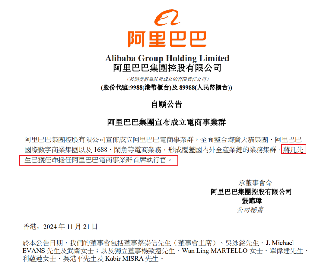 在蒋凡逐步重返核心层的同时,阿里巴巴的高层也经历了显著的变动。