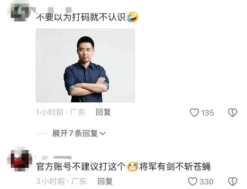 用理想创始人的图片贴图,不过是用问号进行了打码,相当于明示了。