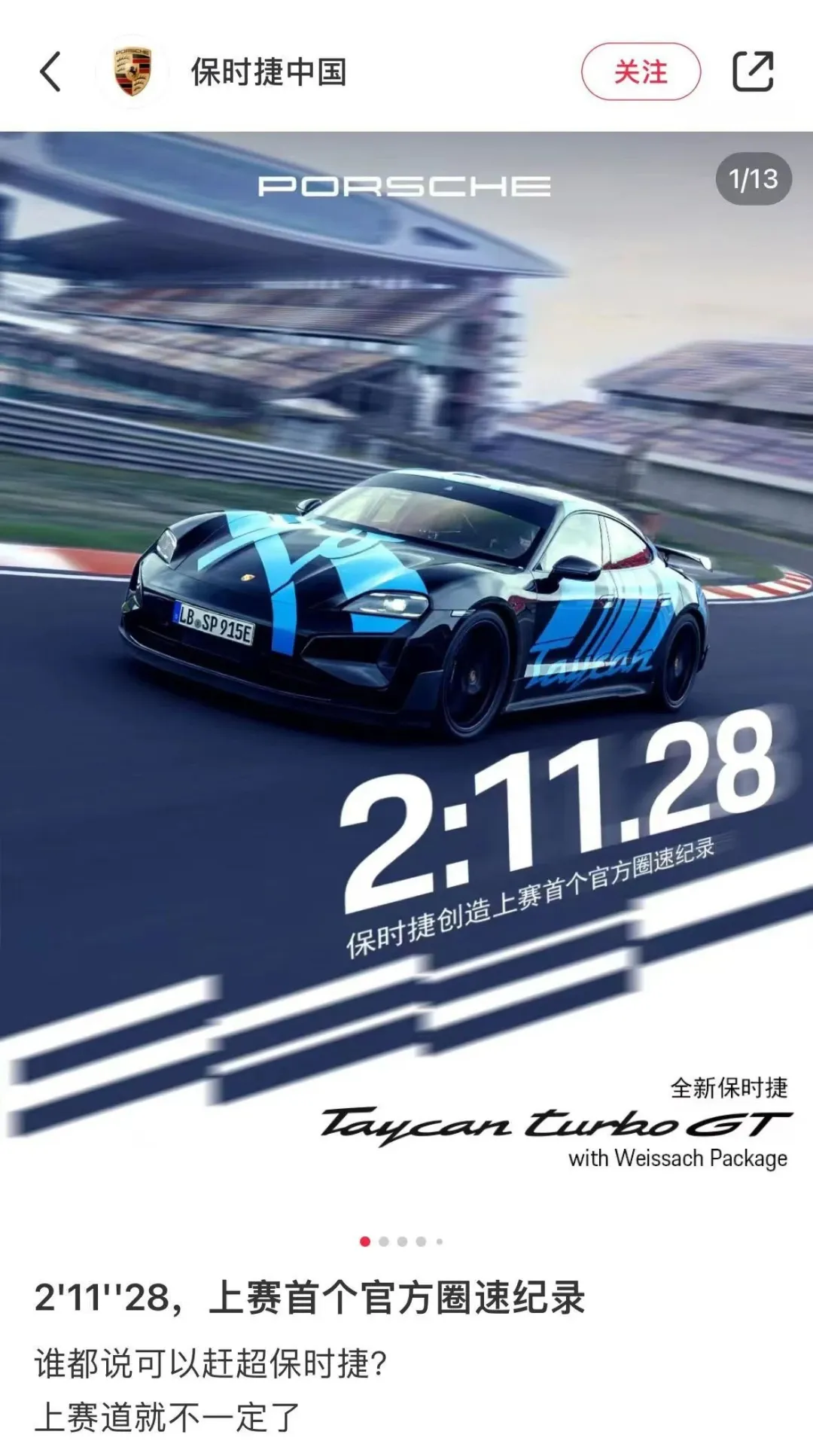 现在被再度启用,不过是因为保时捷试车手Lars Kern驾驶Taycan Turbo GT车型在上海国际赛车场成功创造了首个官方认证的量产车圈速纪录,硬核秀一把品牌实力。