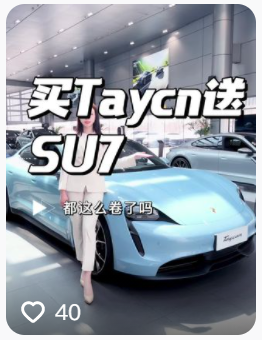 保时捷也不甘示弱,进行了一番反击。沈阳国展保时捷中心就打出了“买车送小米SU7”的宣传旗号。