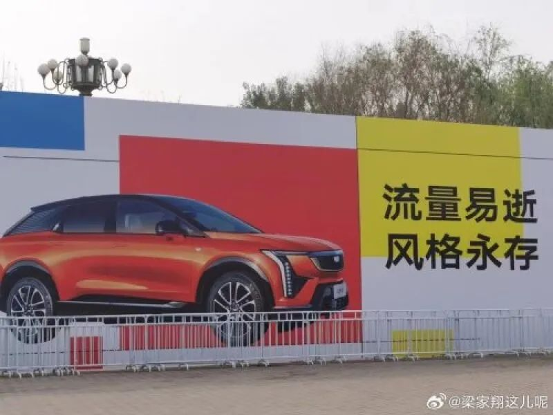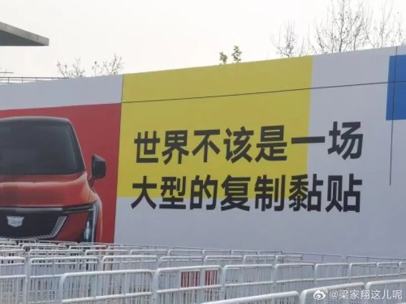 在线下某车展入口处广告牌中,凯迪拉克依旧用海报文案内涵小米抄袭,一条路走到黑。