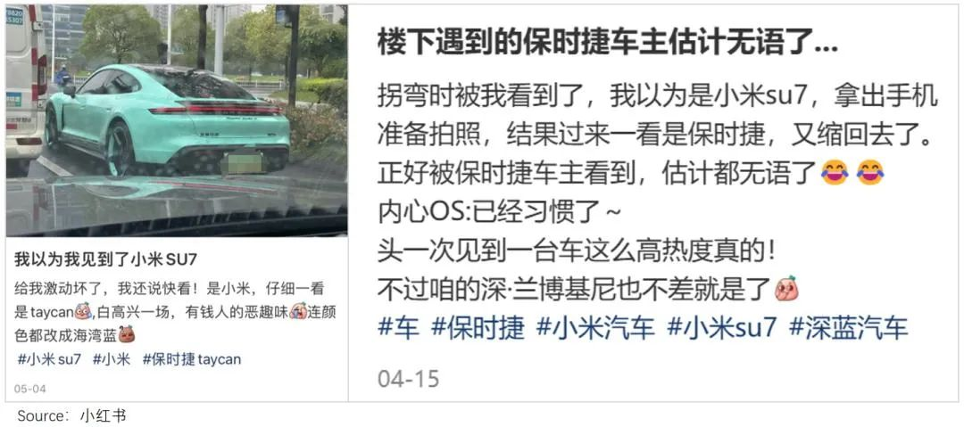 小米SU7外观与保时捷相似,被网友戏称为“米时捷”“保时米”,一度被质疑抄袭保时捷。