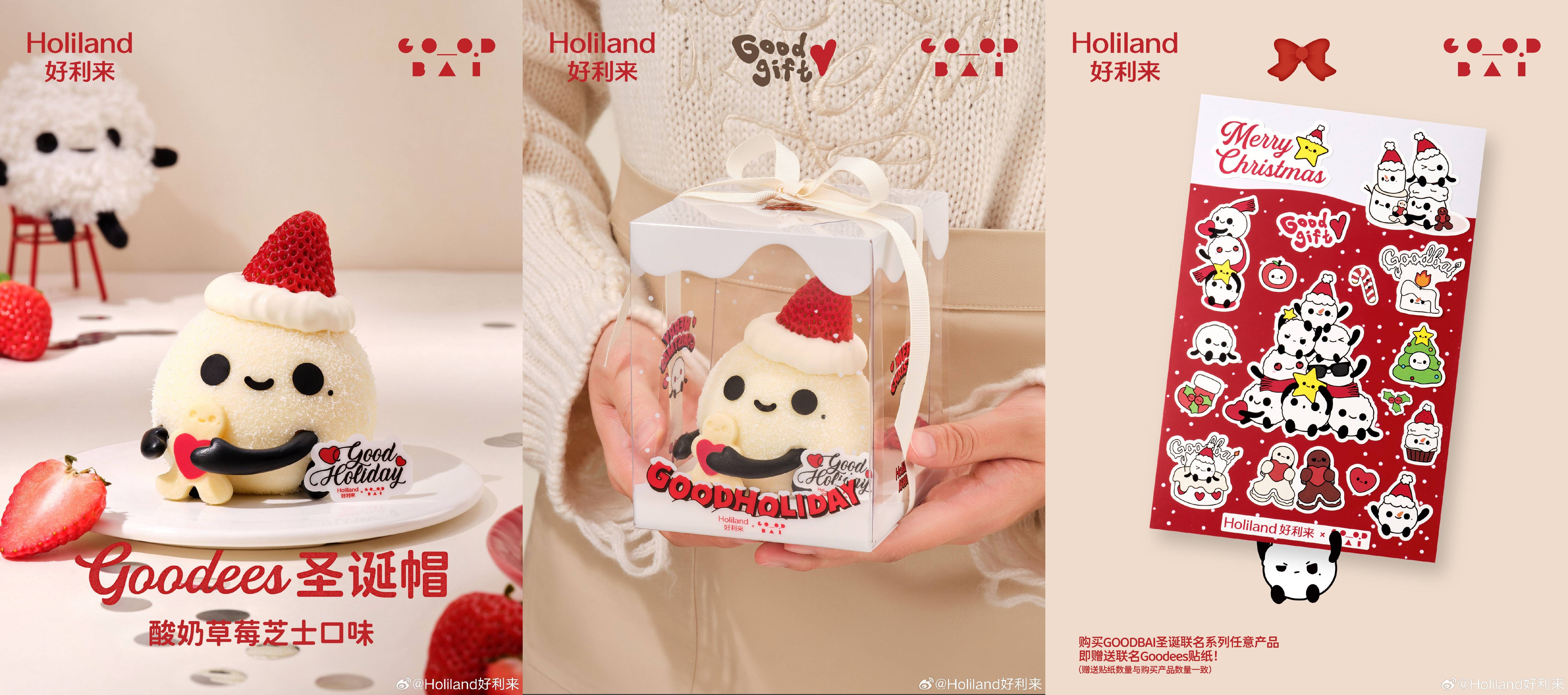 圣诞临近,11 月 27 日好利来携手演员白敬亭旗下服装及生活方式品牌 GOODBAI 共同打造「GOOD CHRISTMAS」,以 GOODBAI 品牌吉祥物圣诞 GOODEES 为设计灵感,将 Goodees World 中可爱治愈的灵感,从服饰延展至蛋糕、西点。一同感受冬日的暖意融融,甜蜜共白。