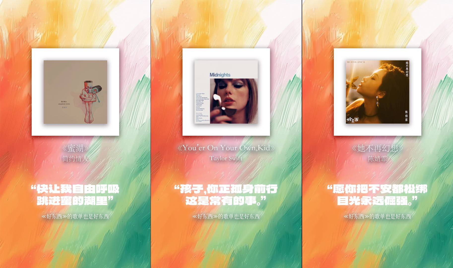 11 月 22 日,邵艺辉导演的新作《好东西》正式上映。截至目前,《好东西》豆瓣评分达 9.1 分,评分人数超过 14 万。不少哦人在感慨导演对当代女性生存现状精准东洞察的同时,也关注其了影片所展现的绝佳的音乐品味。为此,网易云也借势推出了「好东西严选歌单」,希望和大家一起听听这些好听又独特的电影配乐,让音乐再现影片给人们带来的美好回忆。