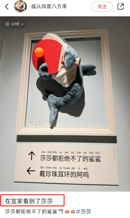 还有宜家同样是蹭热度小能手,在今年巴黎奥运期间,面对潘展乐的痛床、莎莎直播带火鲨鱼玩偶,都能结合自家产品展出同款。