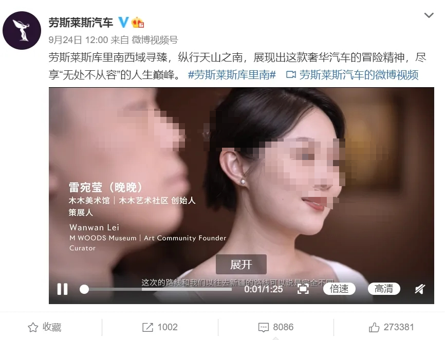如果说哪吒和智己属于险些翻车,那劳斯莱斯请网红晚晚夫妇(林瀚和雷宛萤)代言,可以说翻得很彻底。
