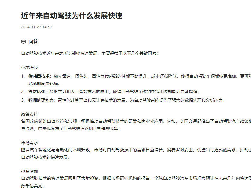 文案工作者菲菲(化名)对此感触颇深,“GPT和文心一言我都是首波用户,当时不论从内容与我提问的适配度、内容的准确度等等方面我都觉得中规中矩。但是现在我的日常工作基本无法离开AI搜索了,AI搜索真正做到从文案思路到细节数据各个方面,都让我工作效率直线上升。”