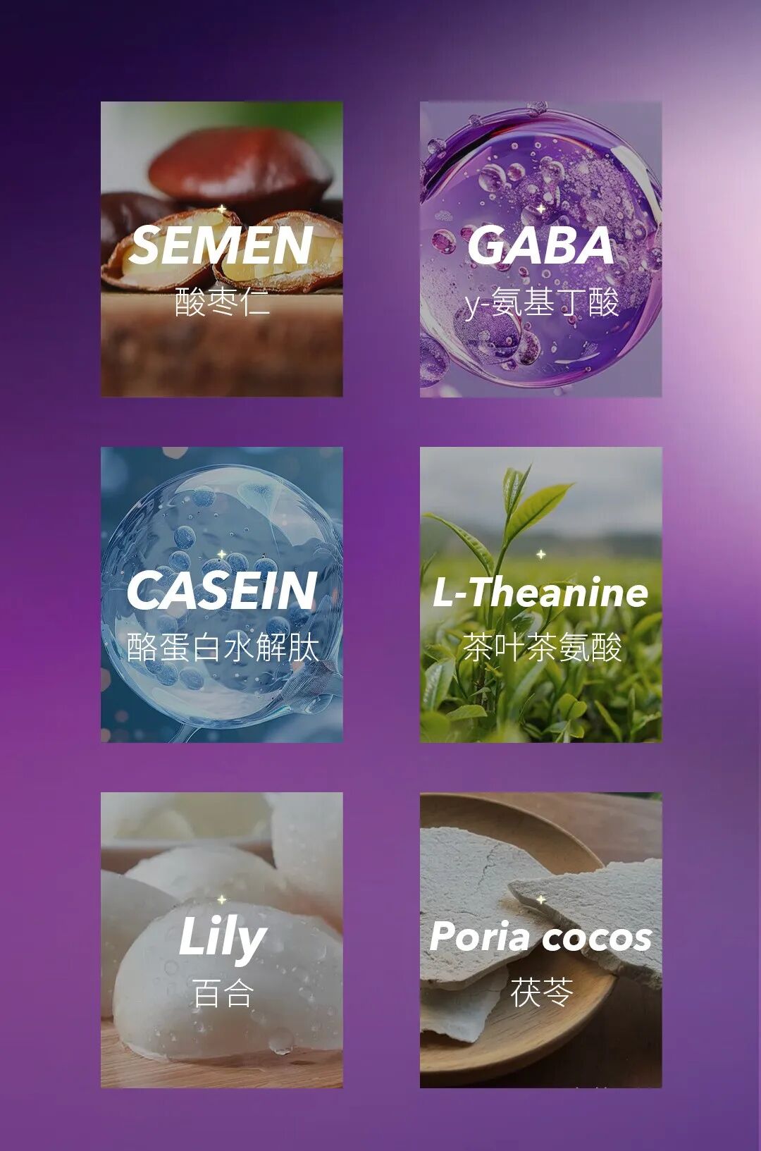 尤其是产品中所含的酸枣仁、酪蛋白水解肽、γ-氨基丁酸、茶叶茶氨酸、百合、茯苓,都有缓解焦虑、镇静心神、改善睡眠等功效。