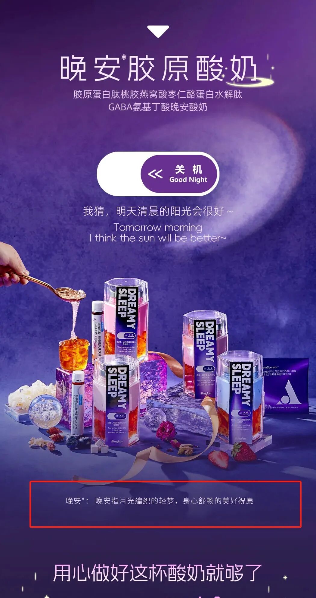 但Blueglass不能否认,“助眠”就是这款“晚安胶原酸奶”的最大卖点。