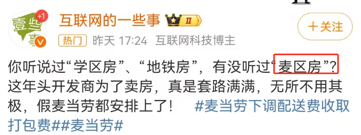 如今多少人只恨不在有麦当劳的区房,建议小米雷军出个麦区房,下楼就能轻轻松松吃到麦当劳。