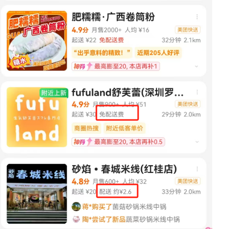 只要打开美团或者饿了么,就会发现除了夜间配送或者远地区配送价格昂贵的情况,白天的配送费基本控制在5元以内,有的甚至免配送费。