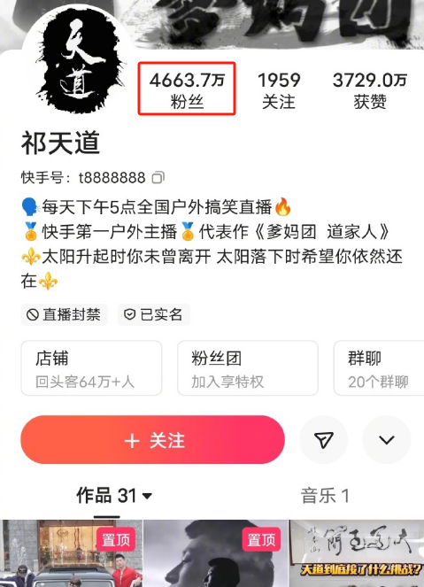 据公开资料显示,快手主播“祁天道”粉丝数达到4600多万,真名孟凡斌。