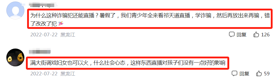 而在2022年,也就是祁天道刑满释放复播后,不少网友就对他的复播行为表示不满。