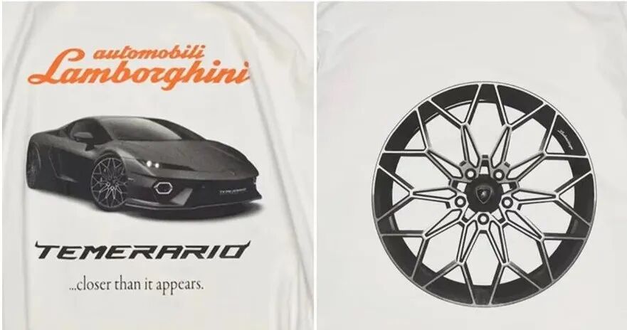 合作系列的首发单品为一款白色长袖 T 恤,衣身印有兰博基尼 Temerario 2025 版混动跑车的图案,限量 630 件,售价6500元。