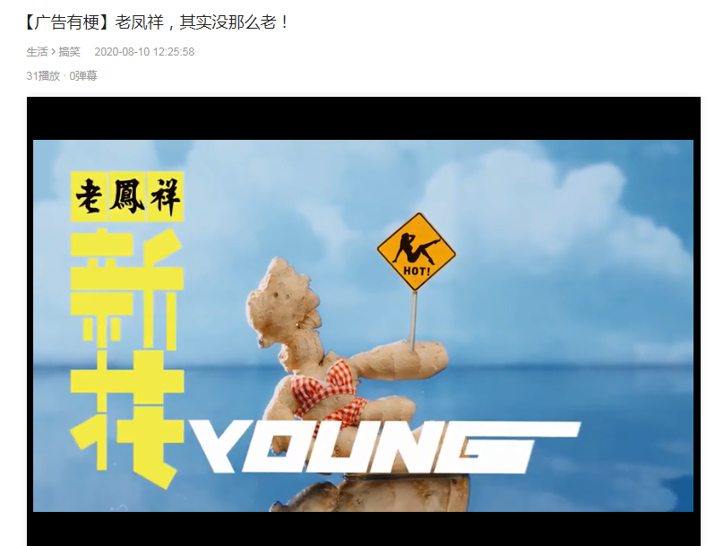不可否认,当下是一个网红品牌当道的时代,如钟薛高、元气森林等,它们或以全新的品类、或以全新的定位、亦或全新的营销手段,俘获一批又一批年轻消费者的心。然而随着新品牌的不断涌现,相当数量的传统品牌陷入窘境:或活着,但不温不火,饿不死也吃不饱;或归隐,逐渐淡出人们的视线。不过最近,一个相当老的老品牌——老凤祥玩了一把大的。老凤祥为了加深品牌在大众心目中的新形象,在B站、抖音等社交平台上线了一支以“老凤祥,新花young”为主题的趣味病毒创意视频。
