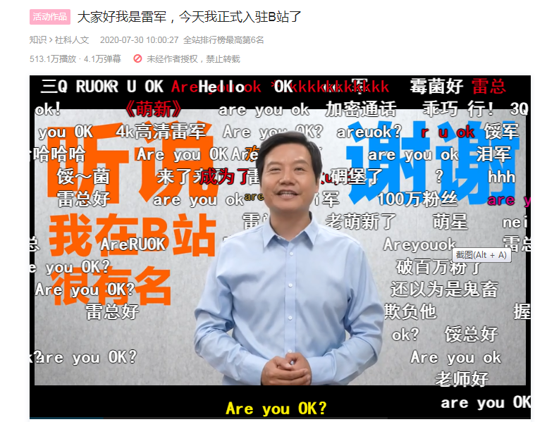 雷军在七月底进驻B站,4条视频吸粉100万+。在公告里,雷军写到:欢迎大家来看我的演讲会。身份是“歌手”,源于2015年一次发布会的英语发言被UP主Mr.Lemon剪辑成鬼畜视频,视频中“Are you ok”和“Thank you very much”的雷氏发音极具喜感,成为口耳相传的梗。不可否认,小米的火爆,与雷军本人的网红属性有脱不开的关系。其实,在这个过程中,网红品牌在营销上,有很多值得借鉴的地方,但也不能完全照搬。因为传统老品牌,不像新创企业比较好掉头,树立一些新的方向和营销模式。包括百雀羚、美加净等老品牌做的一些新媒体尝试,最终无非是用最少的钱,获得最高的市场知名度和转化率。