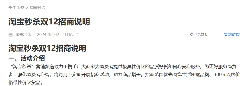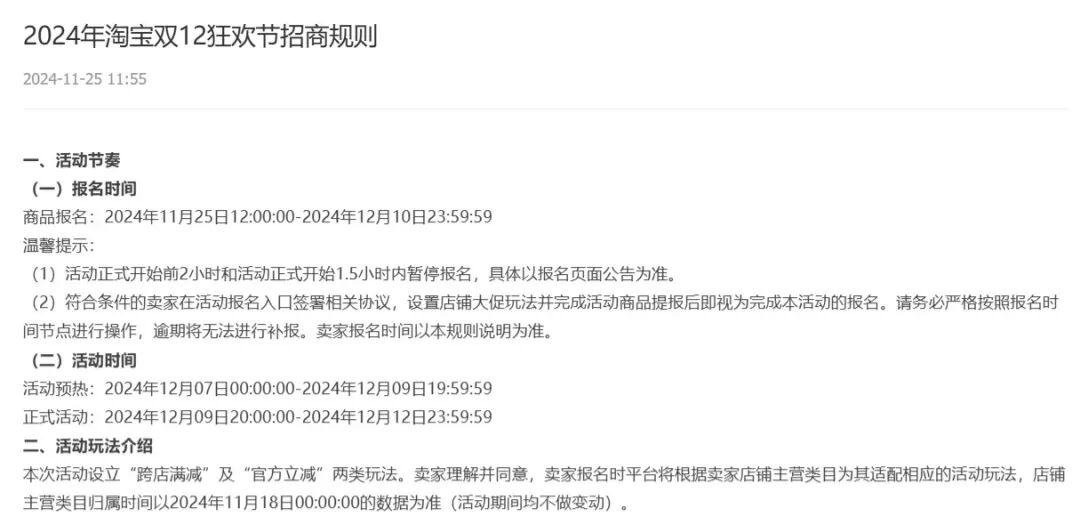而电商天下梳理各大平台“2024年双12招商信息”发现,这四位老对手的策略依然有较大的差异。