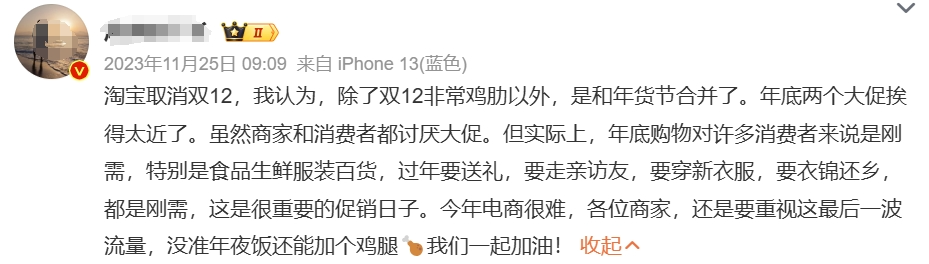 有趣的是,网友对于淘宝取消双12,虽不乏“惋惜”,但更多的是一片“早该如此”的叫好之声。