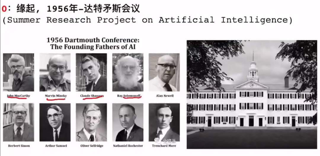 1956年的夏天,于美国达特茅斯学院(常春藤之一)召开的一次学术会议,被后世认定为全球人工智能研究的起源点。