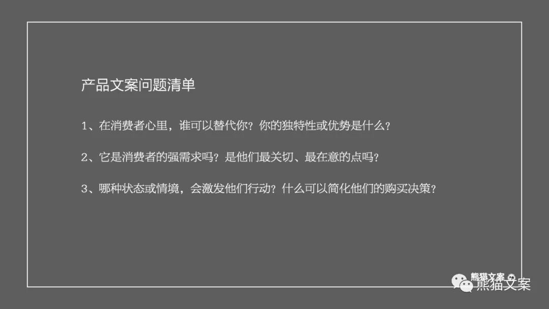 以上三个问题,都是文案写作时的策略探测器,它可以帮你扫掉大多数伪需求、弱需求的雷。那么这份问题清单具体怎么用呢?
