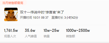 有了热度,黄子韬马上下场直播带货,在10月31日,黄子韬的直播带货销售额在1000-2500万左右,数据非常靓丽。