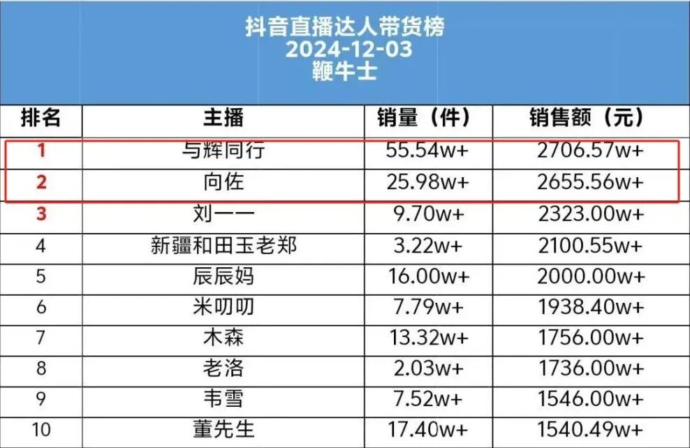 并且,在抖音达人带货日榜中,向佐跃居第2位,仅次于董宇辉的“与辉同行”。