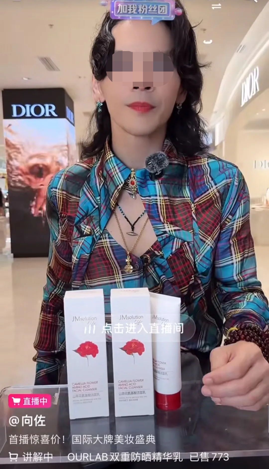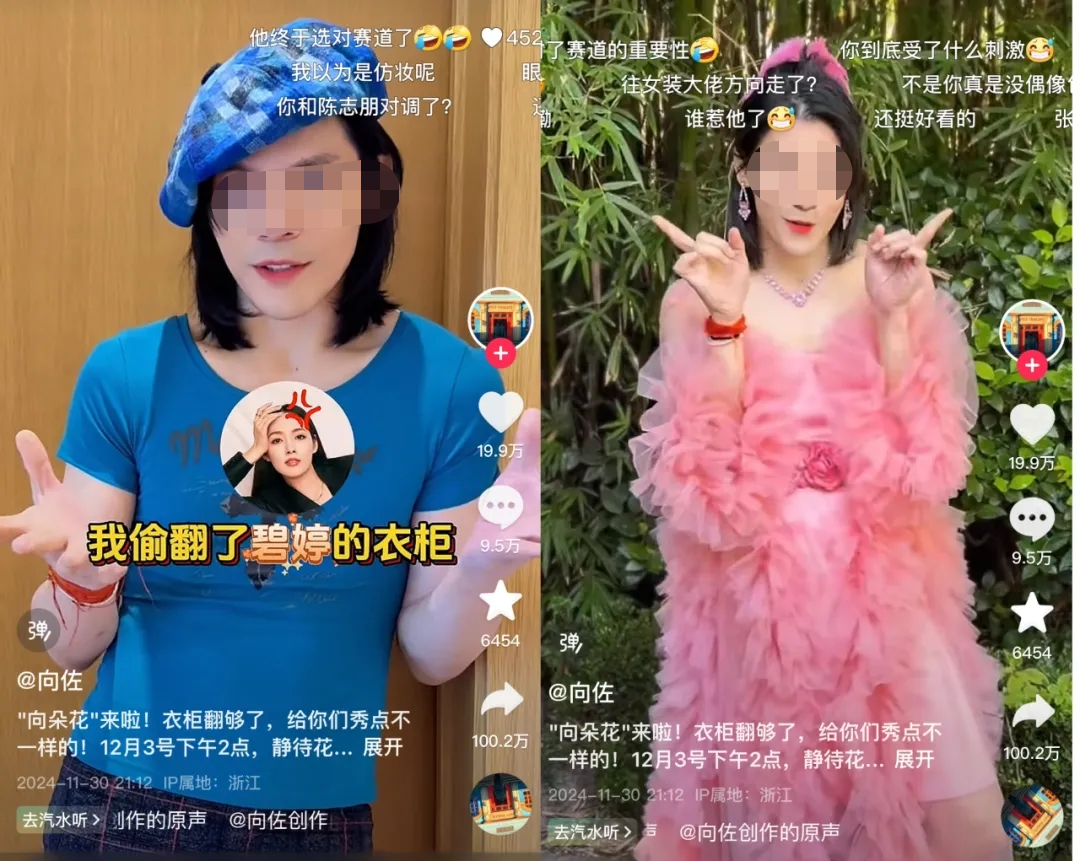 12月3日,向佐男扮女装出现在直播间,还与药水哥等网红合体制造热度,吸引了近1200万人次的观看。