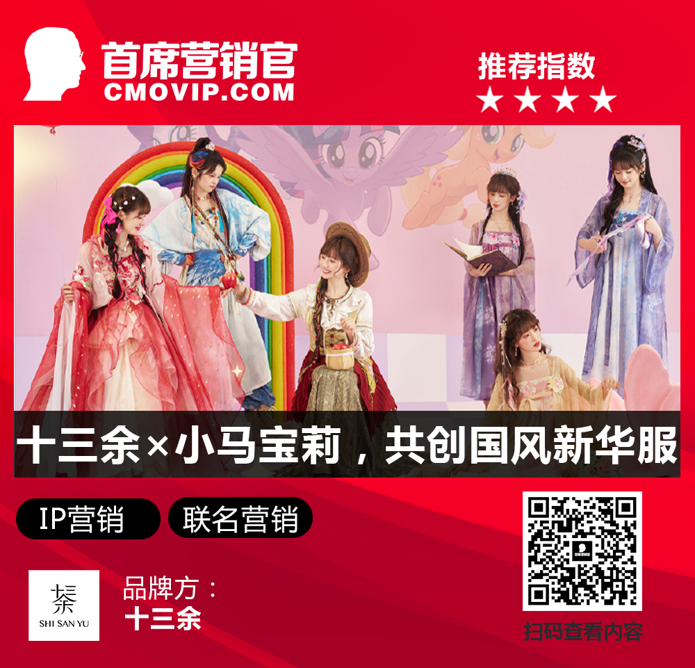 点评:品牌官宣超人气IP小马宝莉的联名,来建立与目标群体之间的情感连接和交流,并在此之中让传统服饰的魅力在新时代里熠熠生辉。