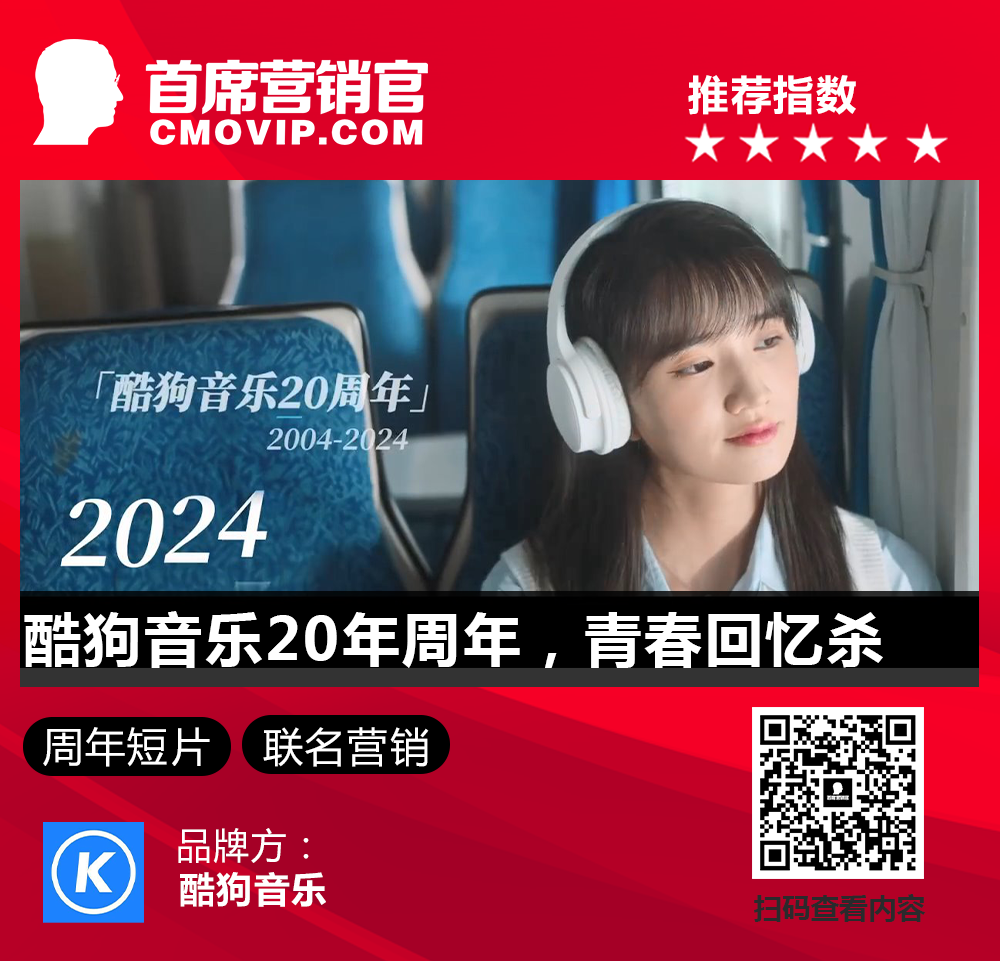 为此酷狗音乐发布了20周年品牌片《听歌就在酷狗音乐》,带领大家一起回忆这20年里的年度记忆歌曲,看看一路以来的成长。