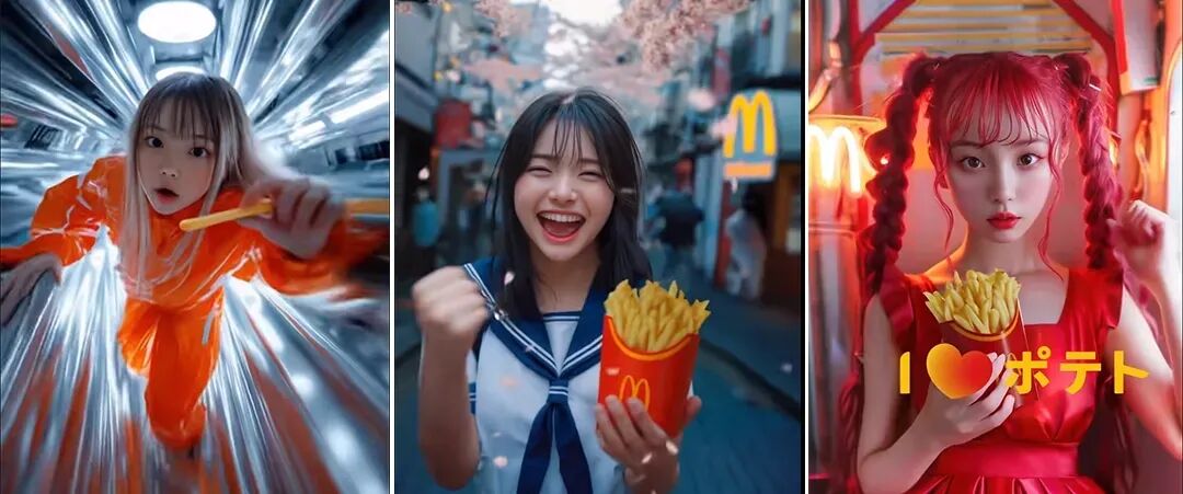 还有麦当劳一则宣传薯条优惠的AI广告,AI美女演绎薯条画面充斥着恐怖谷效应,被嘲“赛博尸块”“毫无食欲”。