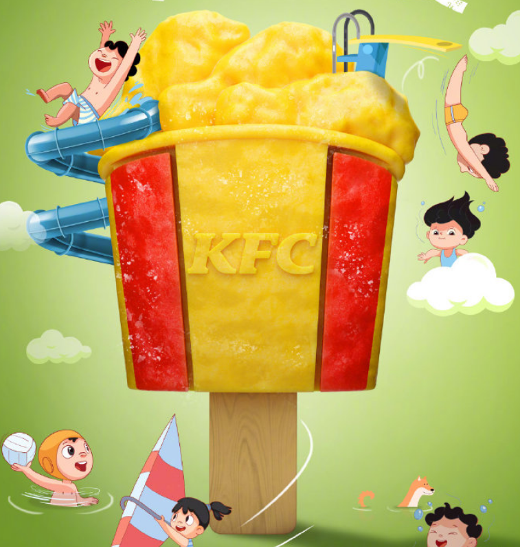 以全家桶为设计形状,肯德基推出全家桶造型雪泥雪糕和黄金周边。