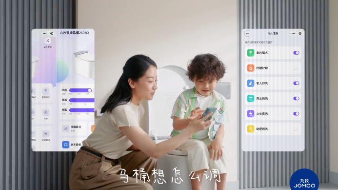 做马桶的九牧,也不知道是故意的还是不小心的,也试过推出九牧全家桶概念,表达的就是每个人都有自己的马桶。