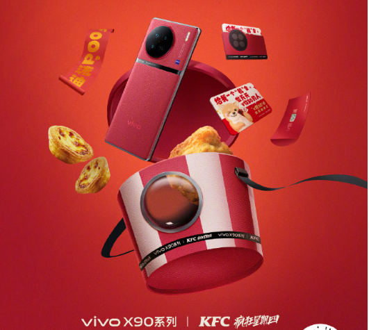 此前联合vivo推出新年限定联名礼盒,这其中礼盒就肯德基经典炸鸡桶造型。