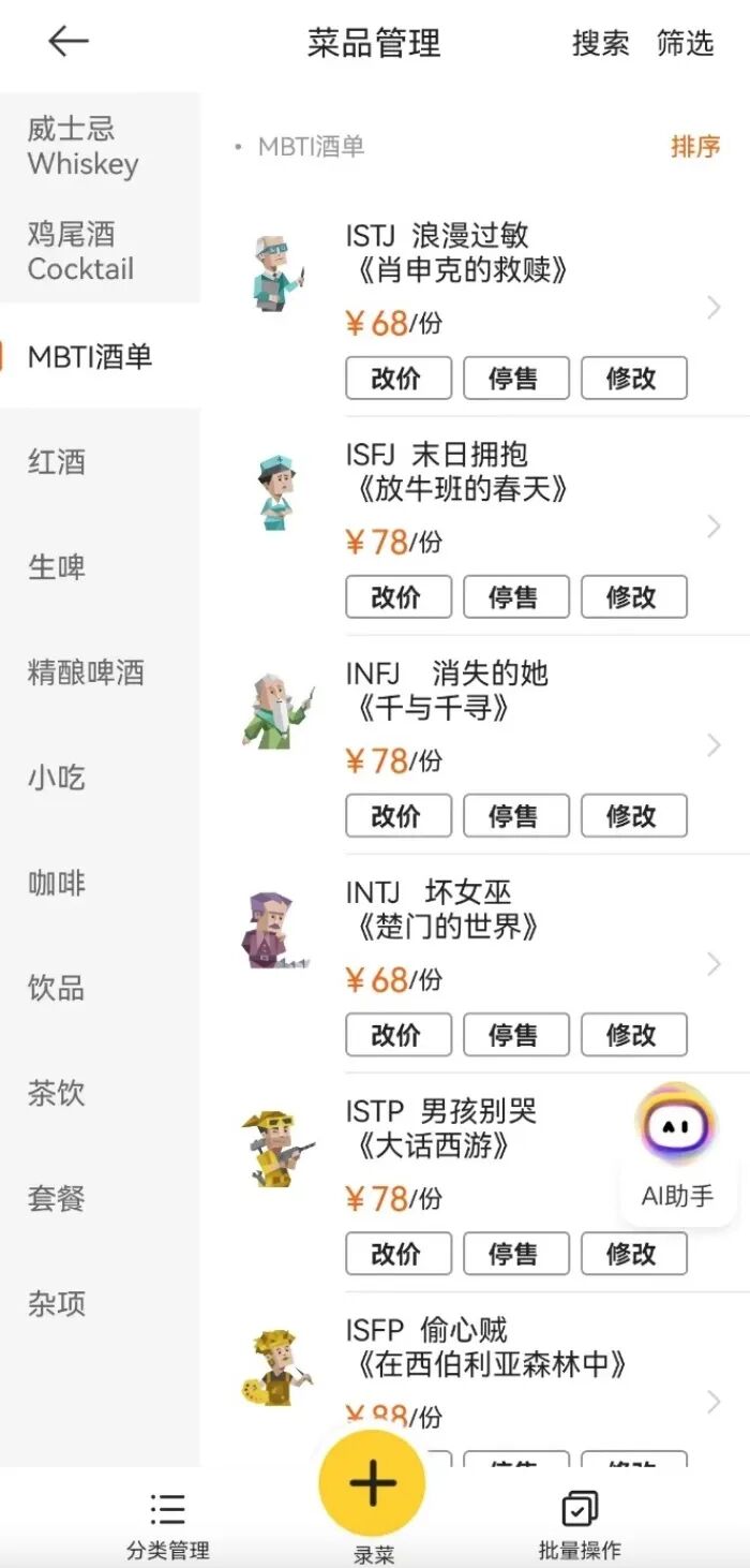 列出MBTI专属酒单