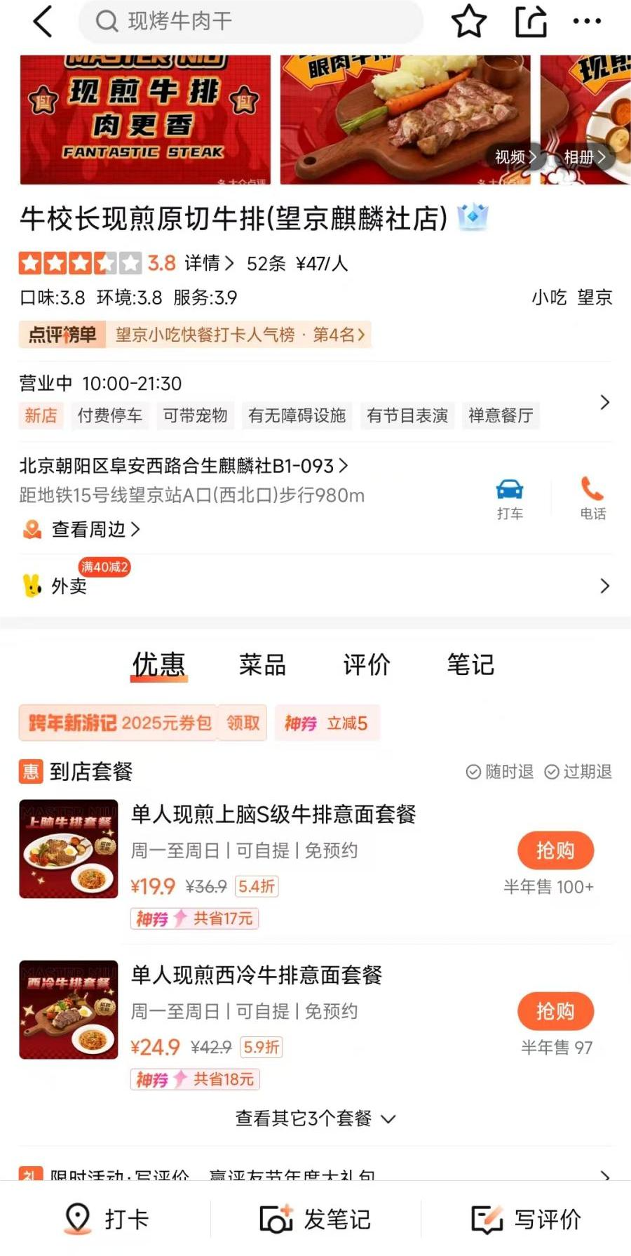 从大众点评的3.8分来看,牛校长的营销大军似乎还在持续发力,但效果似乎并没有那么惊艳。