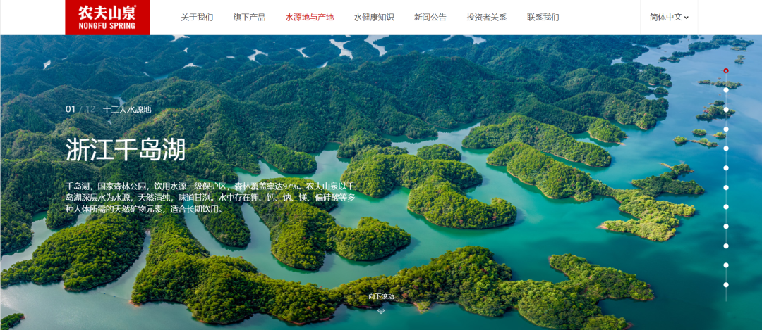对于大部分消费者来说,提起农夫山泉水源地,首先想到的还是千岛湖,毕竟,浙江千岛湖是农夫山泉的起点,也是农夫山泉十二大水源中排名第一的标志性水源。