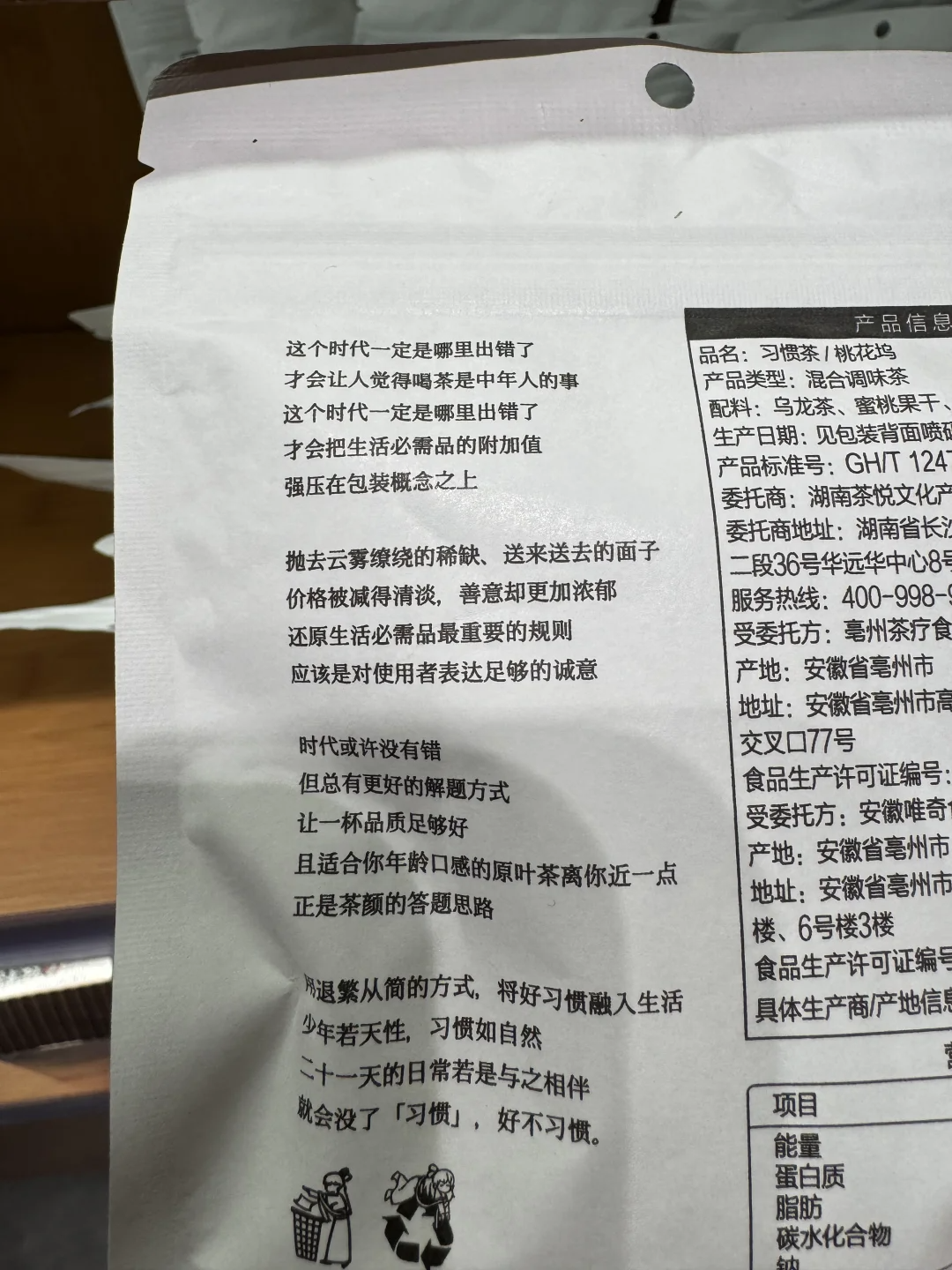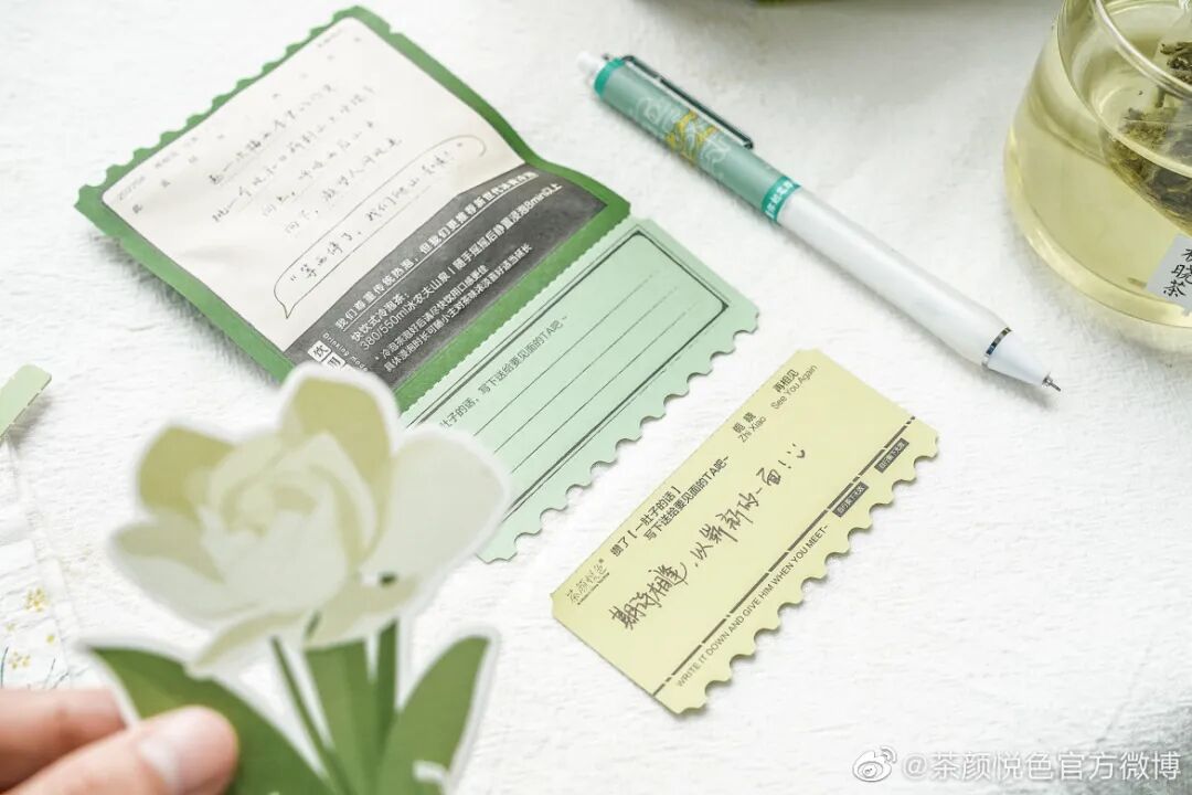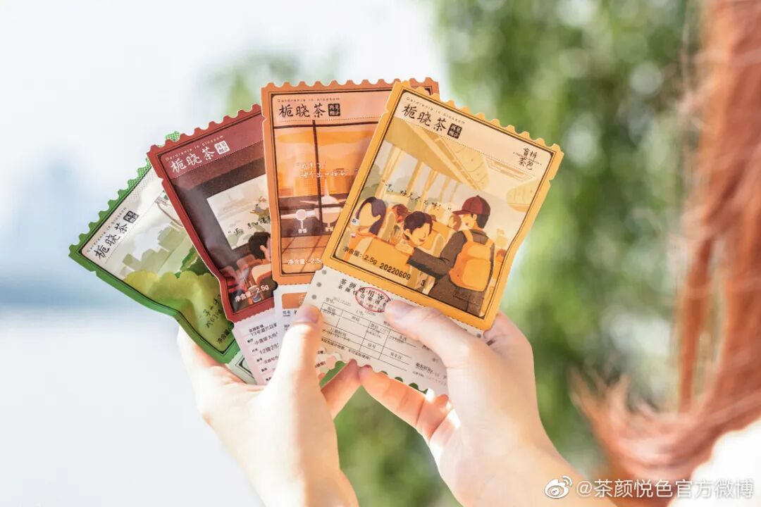 不仅有杯身文案,茶颜悦色的茶包上,都有一行行小诗,勾起年轻人的情感共鸣。
