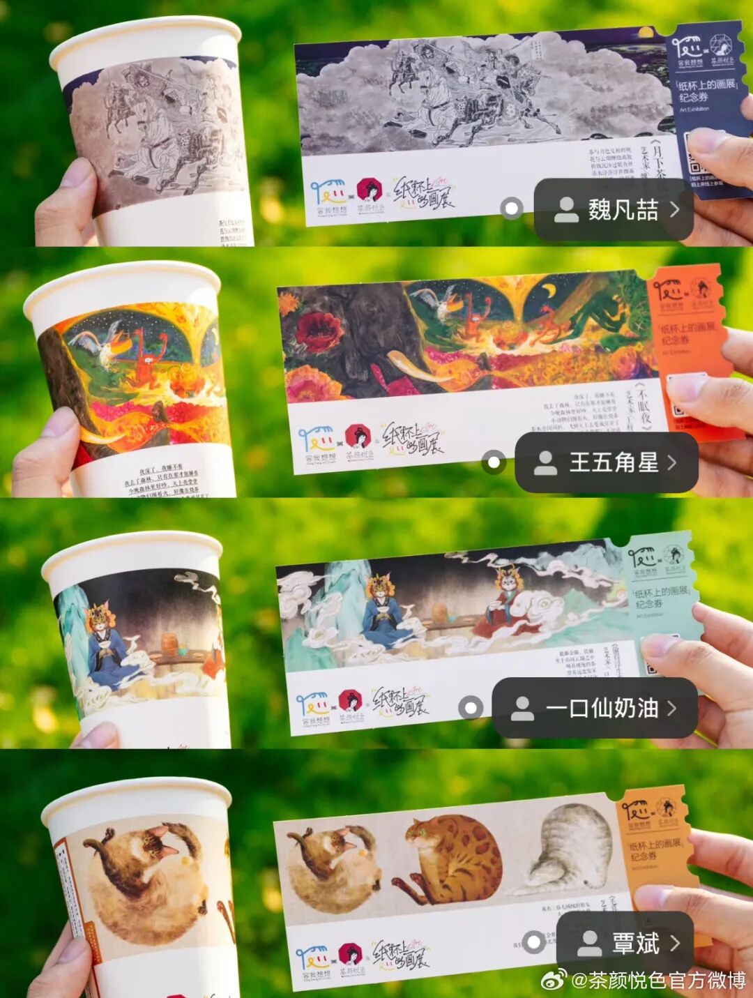 最近,茶颜悦色办了个纸杯的画展活动,耗时5个月,联动《想想工作室》的数十名青年艺术家为茶颜悦色量身定制艺术纸杯,终于在100w个茶颜纸杯上,办了一场“纸杯上的画展”,这11款纸杯,会在12月投放在茶颜全国700家门店使用。