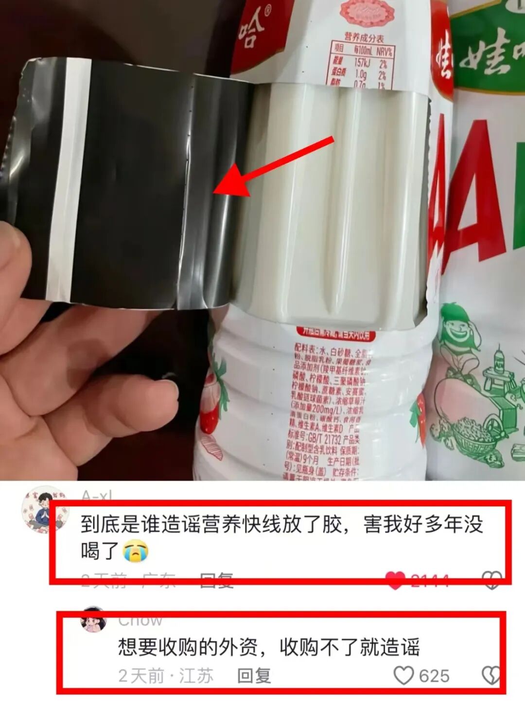 尽管当时营养快线做出澄清,称牛奶蛋白含量较高,脱水后成胶是一种正常的蛋白质凝胶现象,但“谣言”早已深入人心,娃哈哈就此错失了打造又一个AD钙奶王牌单品的机会。