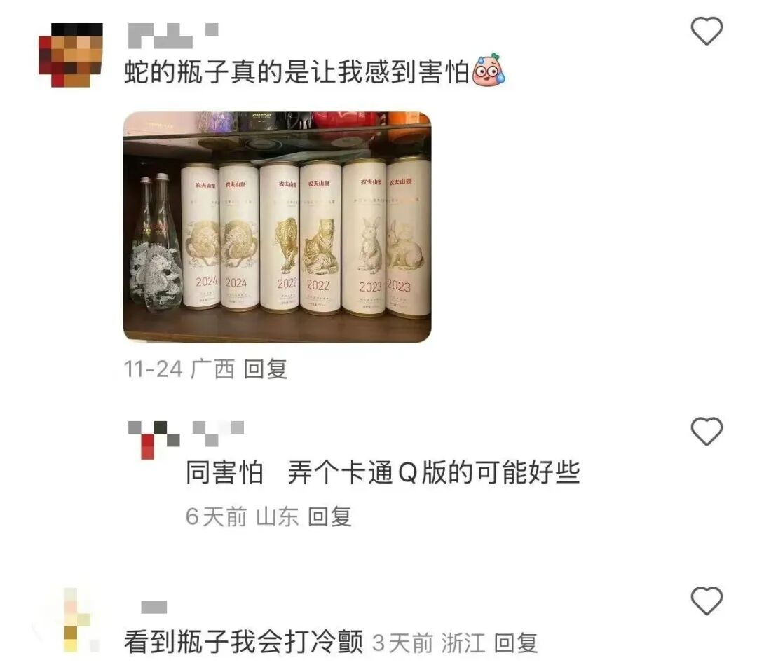 不久前,农夫山泉预告了2025蛇年典藏版“金蛇水”,不同于往年的大受欢迎,蛇年生肖瓶一度遭遇口碑滑铁卢,让不少网友直呼“感到害怕”。