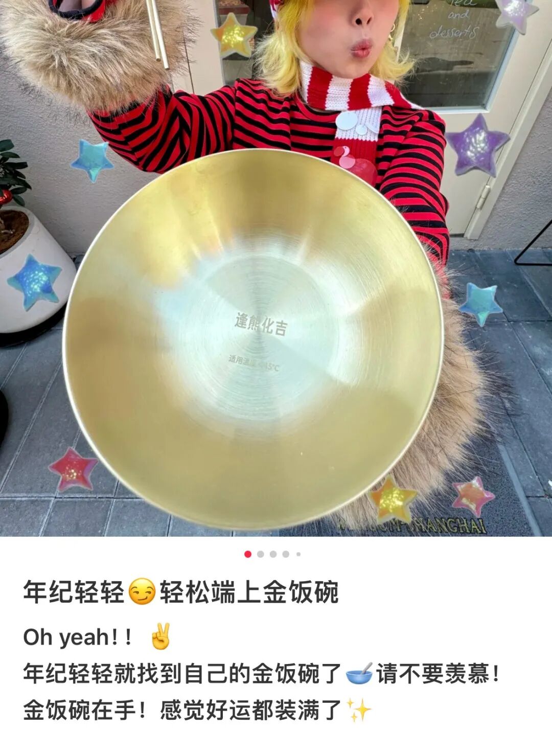 而且,这金饭碗其实是不锈钢材质,并不是真的金碗。