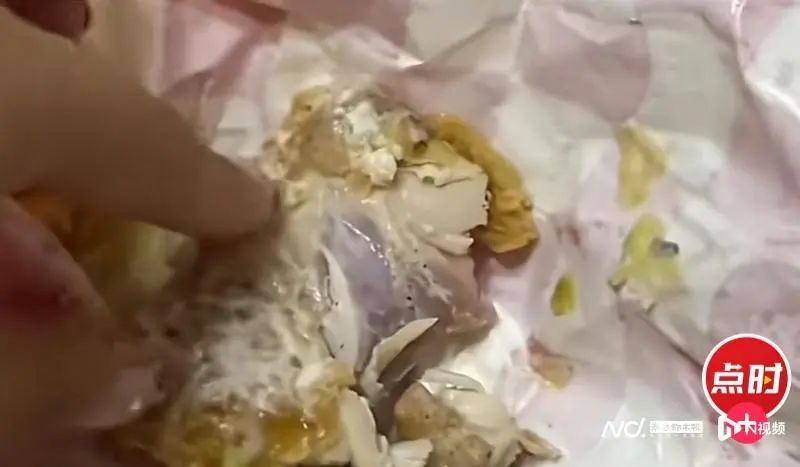 这次“中招”的是来自四川德阳的熊先生,从其拍摄的视频可以看到,汉堡的中间肉排部分存在部分未熟的生肉。