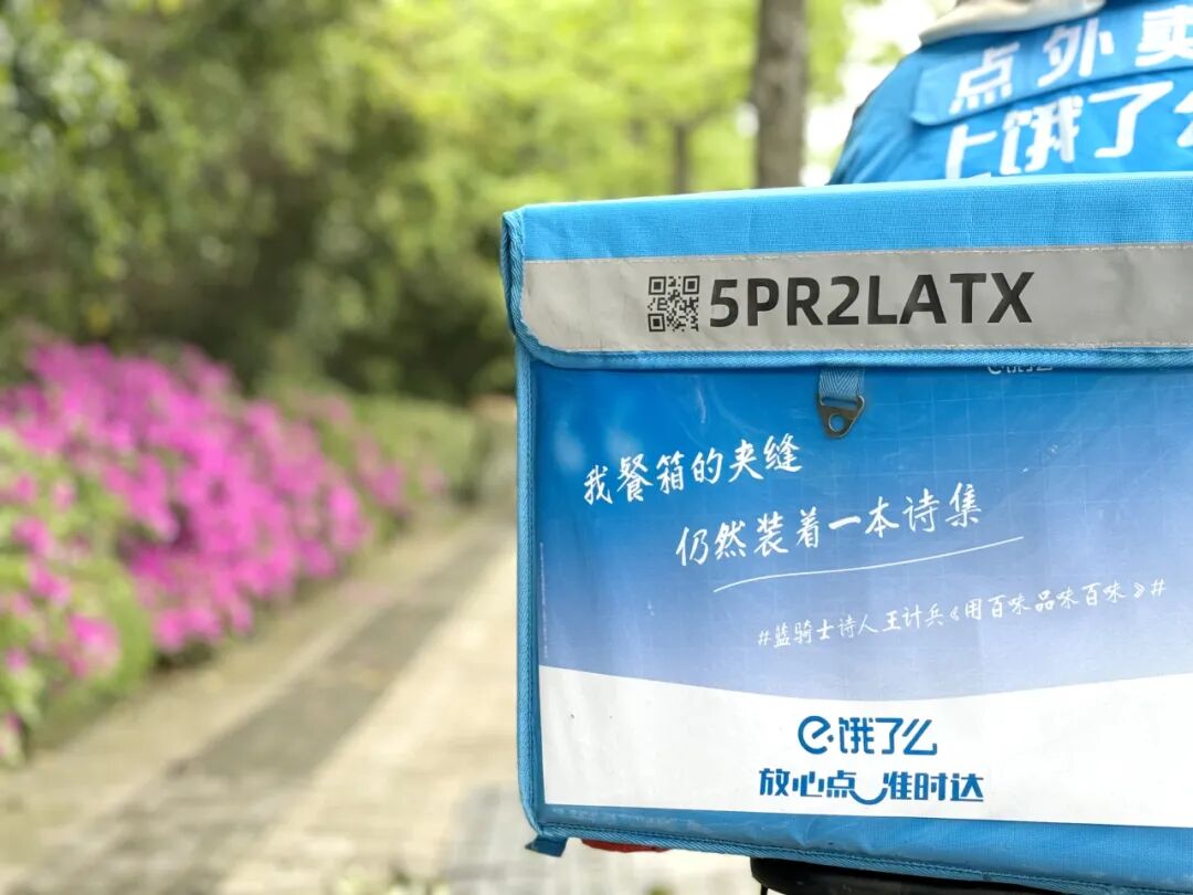 饿了么在蓝骑士的餐箱上写下了一句句浪漫的“诗集”文案。