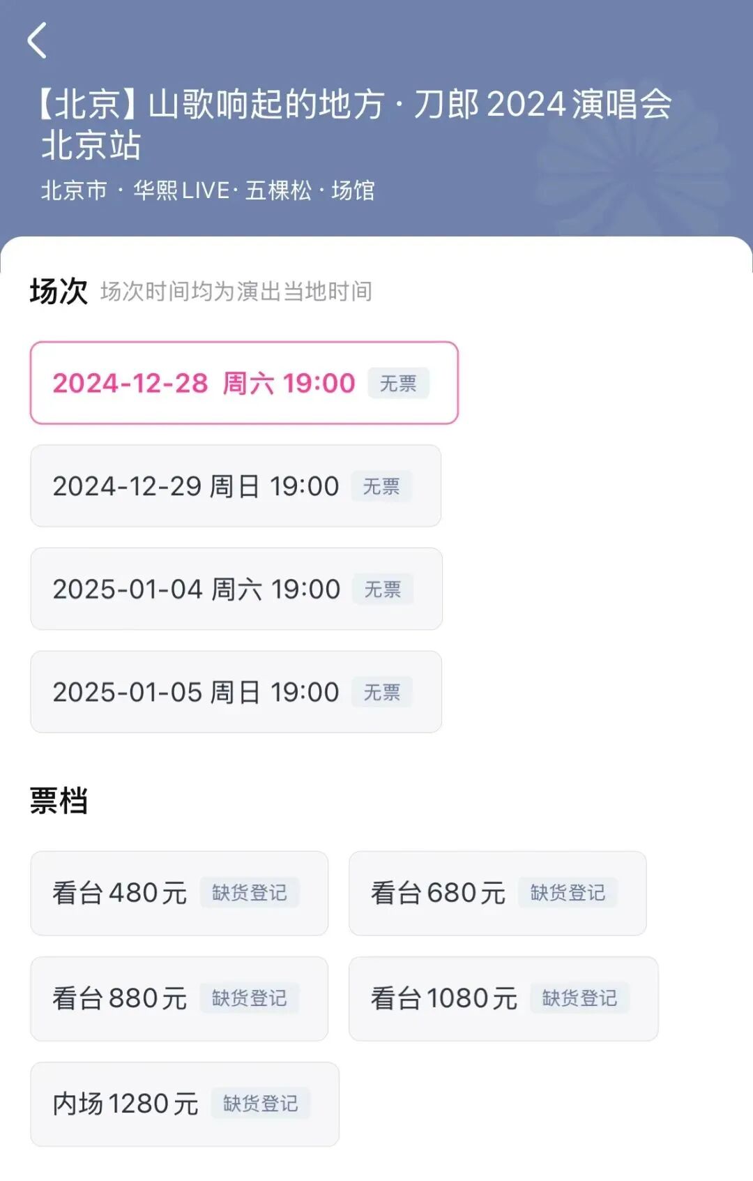 正好赶上刀郎演唱会北京站在近期开票李明,回想起自己小时候父亲专门购买过刀郎歌曲的碟片听那首《2002年的第一场雪》,于是就想抢两张680元档的看台票请父母去看刀郎演唱会。