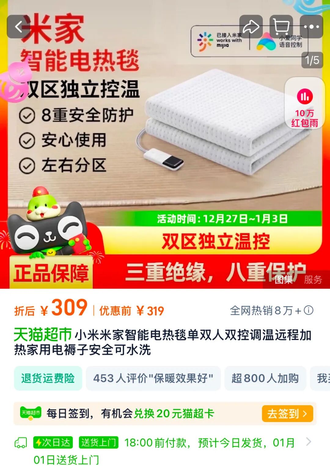 听说小米这款电热毯一个不留神又成为了爆款,甚至还卖断货了。