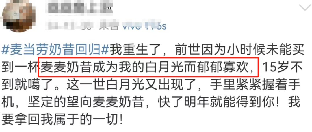 要知道这可是自2014年就下架的奶昔,是麦门心心念念10年的白月光。