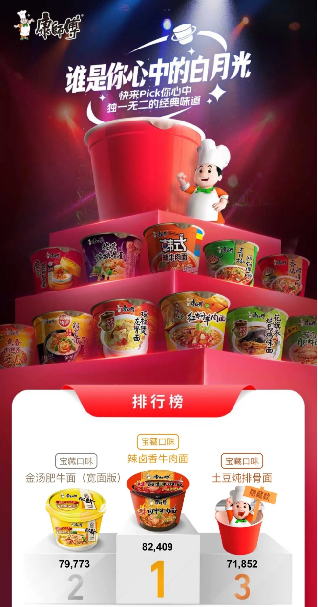 康师傅还推出 “白月光回归计划”,列出200多款昔日经典产品,让大家投票选择产品重回市场。