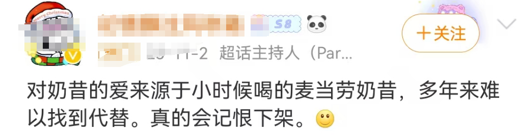 这也不难理解,总有网友对奶昔品类的认知,就是来源于小时候喝麦当劳奶昔。