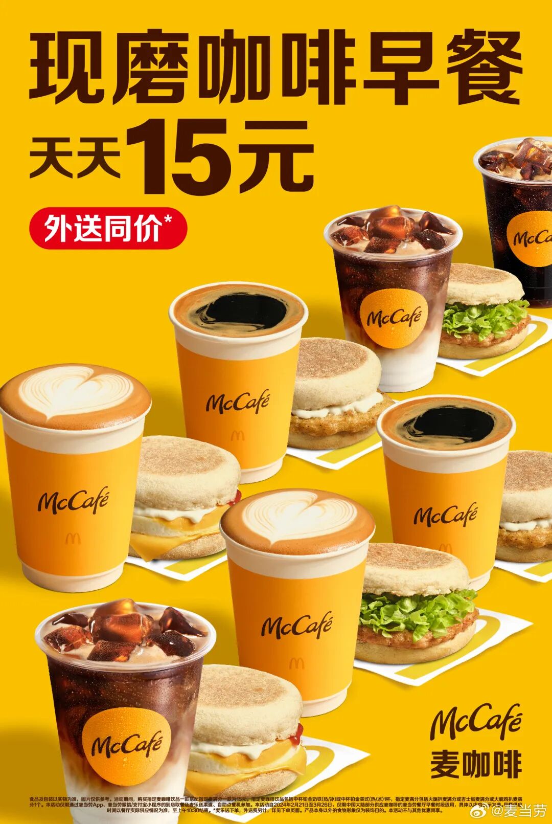 此外,为了满足打工人的早餐需求,麦咖啡还发力“咖啡+早餐”场景。2024年2月,麦当劳推出了15元现磨咖啡早餐组合,一个麦满分+一杯麦咖啡的套餐进入固定菜单,对比单点价格,套餐优惠力度接近五折。