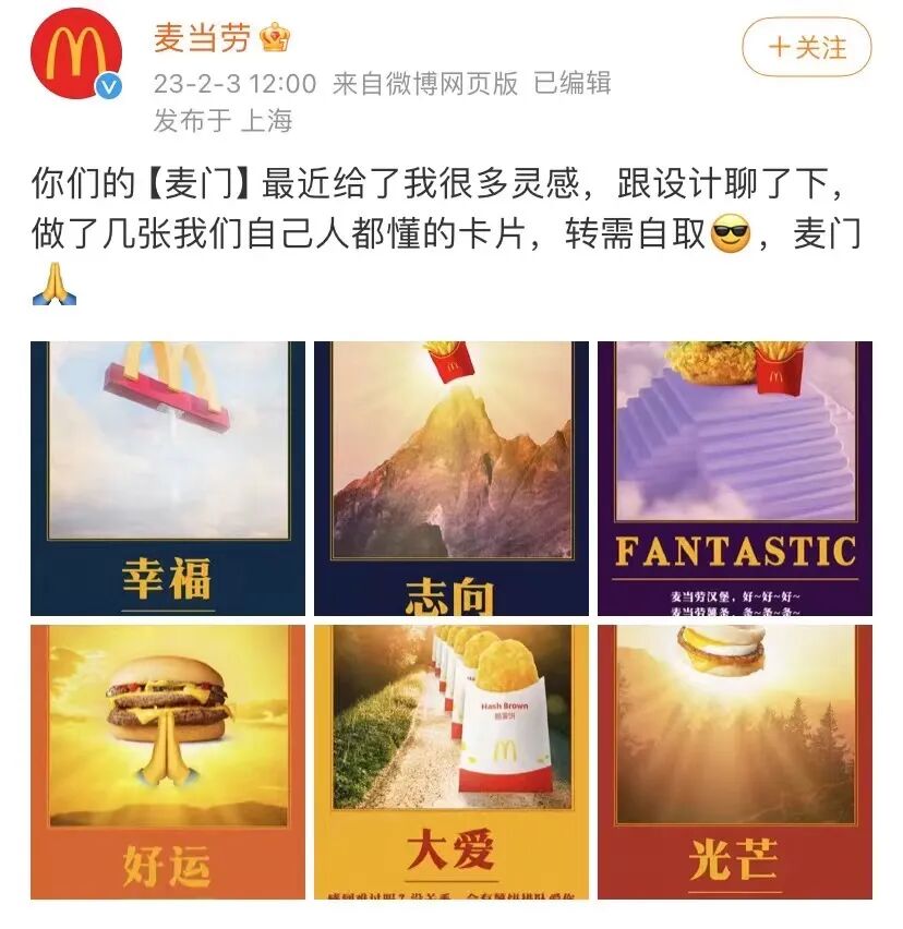 而后麦当劳在社交平台上“发疯输出”,官方整活贴近“麦门”精神状态,后在广告海报中认证了“麦门”标签。